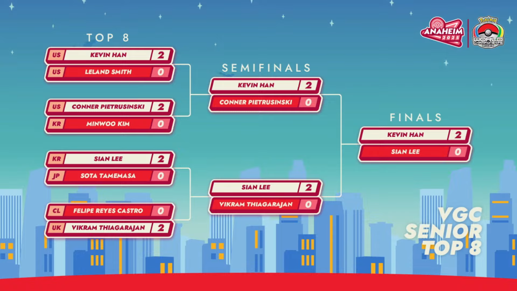 Hello! My name is Kevin Han, and I won the 2025 VGC Senior World Championships. I would like to thank my friends from my personal life, my friends I met through Pokémon, my coaches, and especially my family for giving me the amazing life that I have.