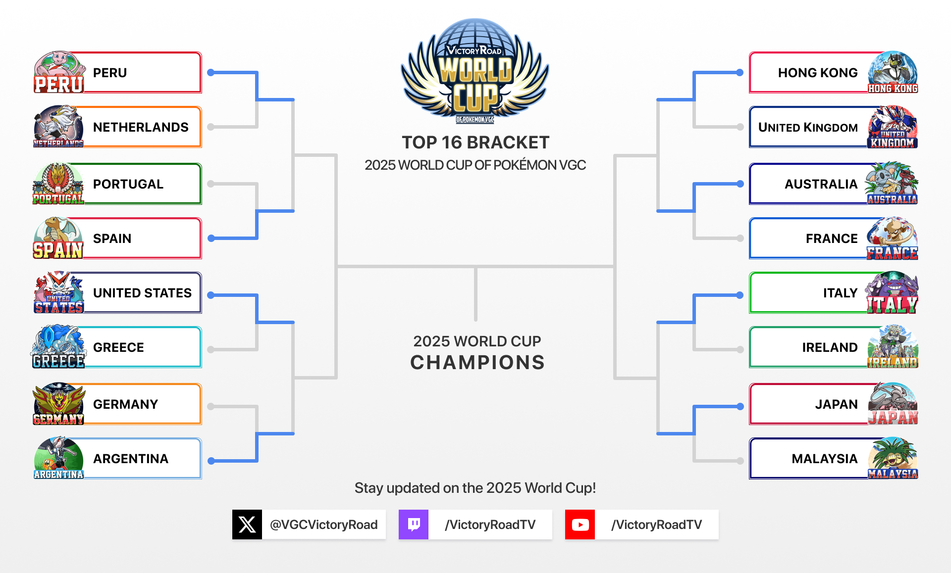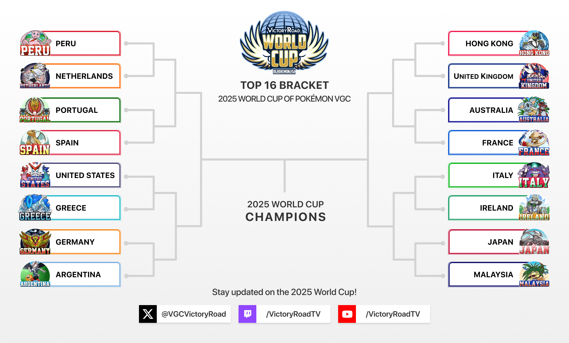 The best 8 teams are defending World Cup Champions Japan, former champions Spain, former finalists Argentina and Italy, as well as Australia, Peru, United States and top cut first-timers Hong Kong!