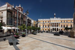 Spain, Extremadura, Badajoz, Plaza de España, Casa Álvarez-Buiza e Ayuntamiento